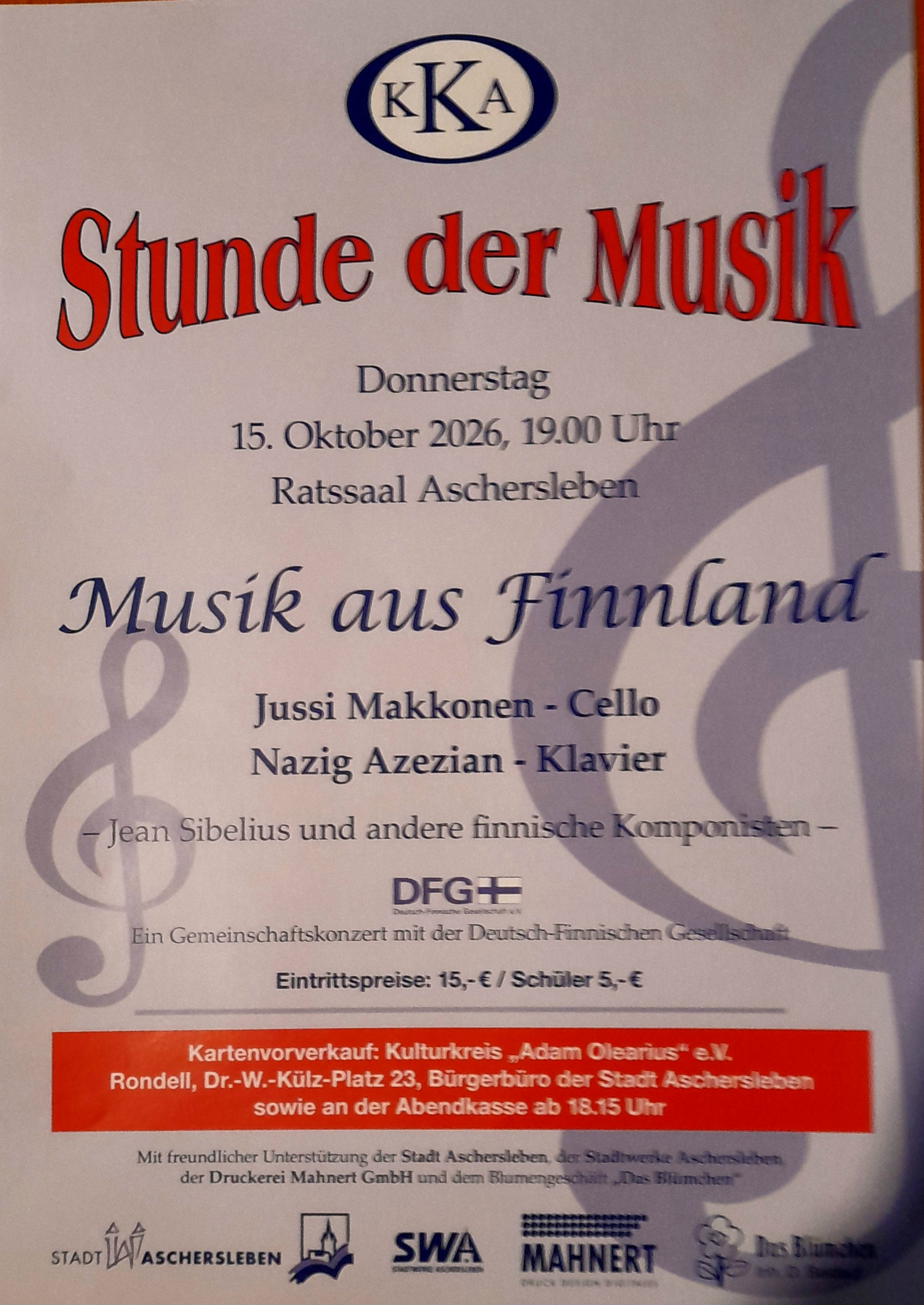 - 15. Oktober Konzert im Rahmen der Deutsch-Finnischen Gesellschaft